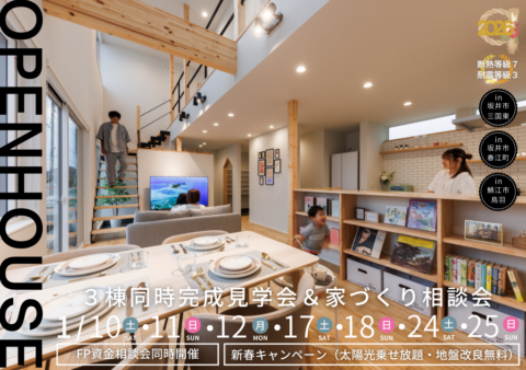【3棟同時完成見学会1/10(土)~1/25(日):今、見なければ一生後悔するかもしれません】